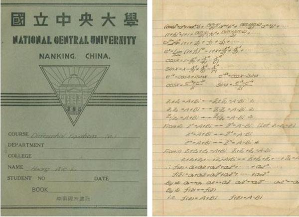 昨天,东南大学档案馆副馆长李宇青向记者展示了黄纬禄院士的数学笔记——一本练习册,封面用英文标注了课程名称“微分方程”,翻开笔记本,里面是用全英文做的微分方程式笔记,大概有二十多页。